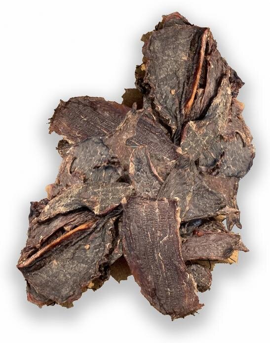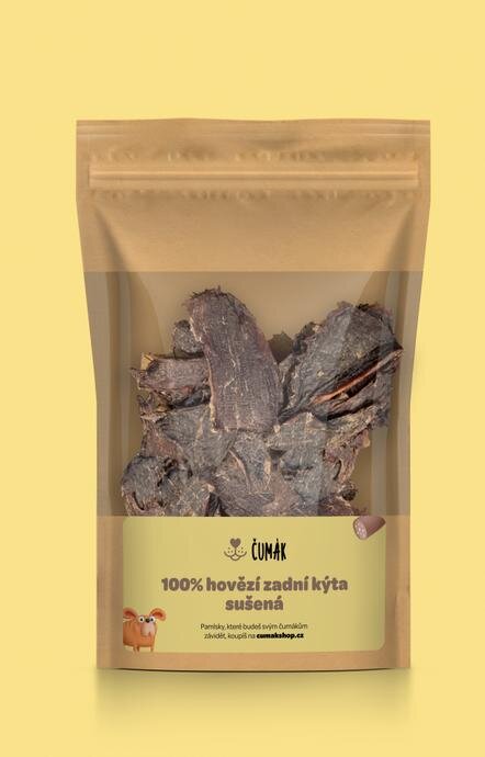 Složení: Hovězí zadní kýta 100 % (sušené v potravinářské kvalitě).