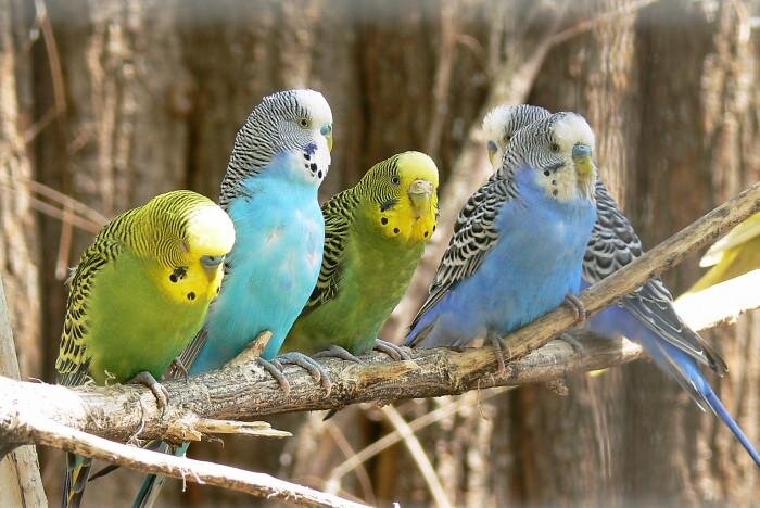 Příklady barevných mutací: šedé, modré, žluté, bílé, skořicové, opalíny, recesivní či dominantní straky, duhové atd.