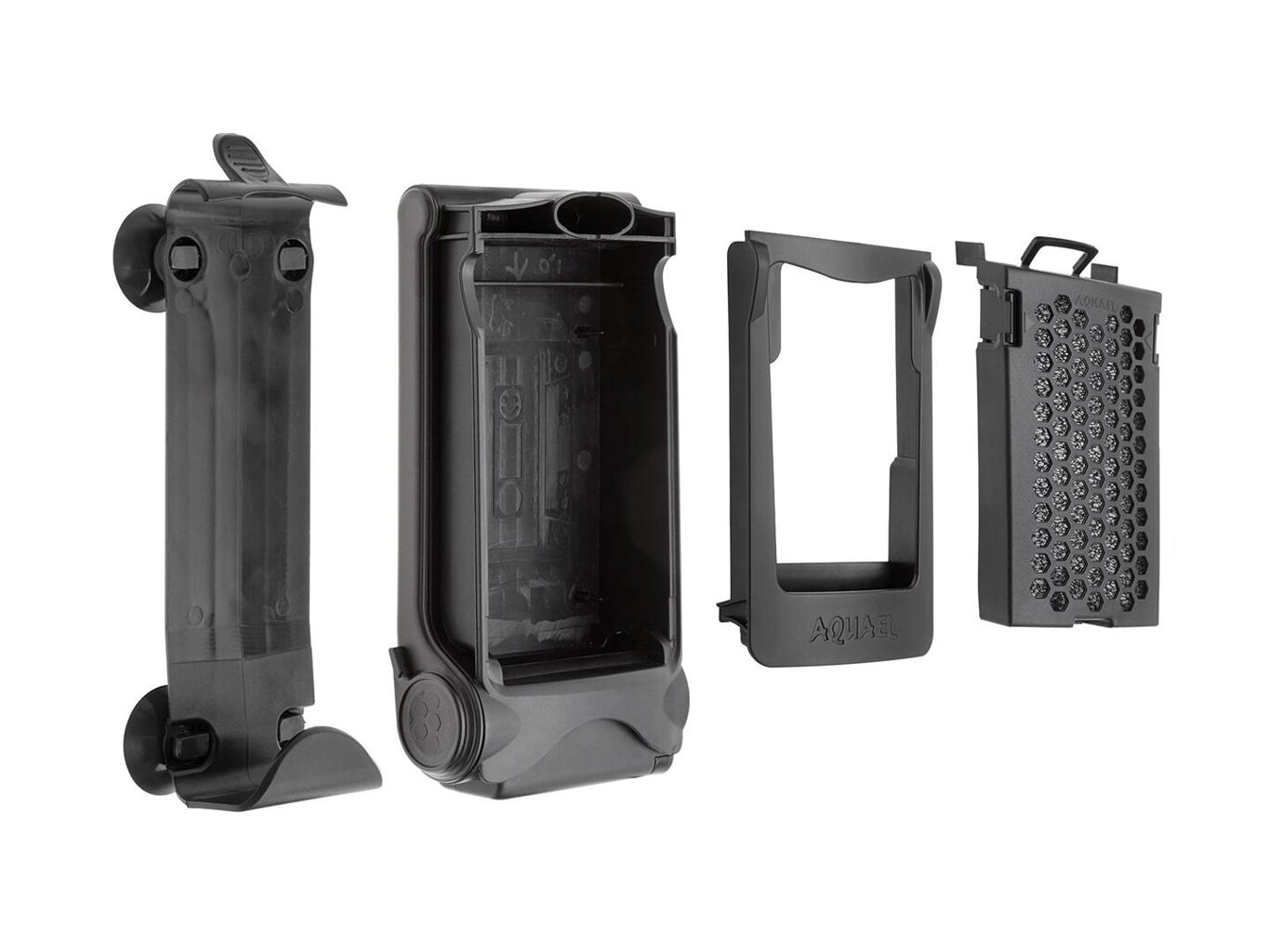Filtr používá užitečný upevňovací roztok. Rám se připevňuje pomocí 4 přísavek. Koš s filtračním modulem se však po stlačení plynule vysouvá. Díky tomu je údržba filtru velmi snadná - motor zůstává po celou dobu ve vodě, zatímco filtrační element lze vyjmout a vyčistit nebo vyměnit.