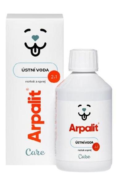 Přípravek Arpalit Care ve formě ústní vody resp. spreje napomáhá snížit tvorbu zubního plaku a zubního kamene. Přispívá k potlačení zápachu z tlamy.