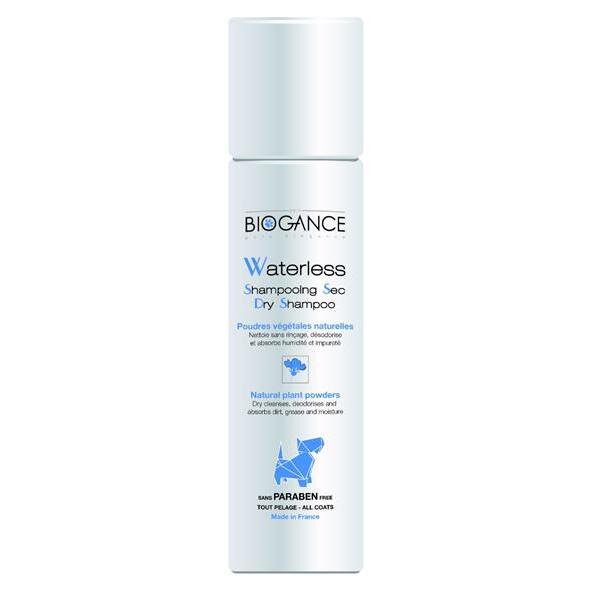 Bezoplachový suchý šampon pro psy Biogance Waterless je vhodný pro všechny typy srsti.