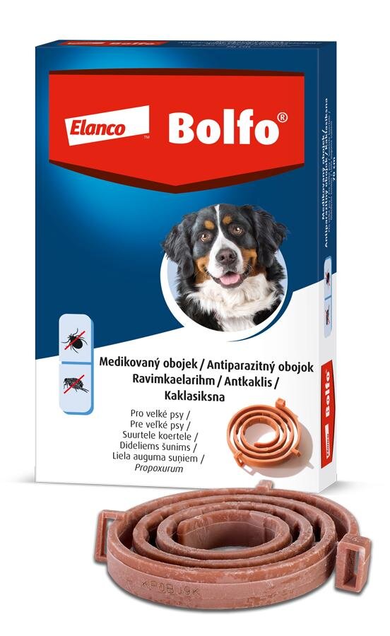 Výrobce: Bayer AG, Leverkusen, Německo, www.bayer-cz.cz Složení: Propoxur 4,442 g. Popis: Bolfo 66cm obojek provelké psy je speciální obojek k hubení ektop...