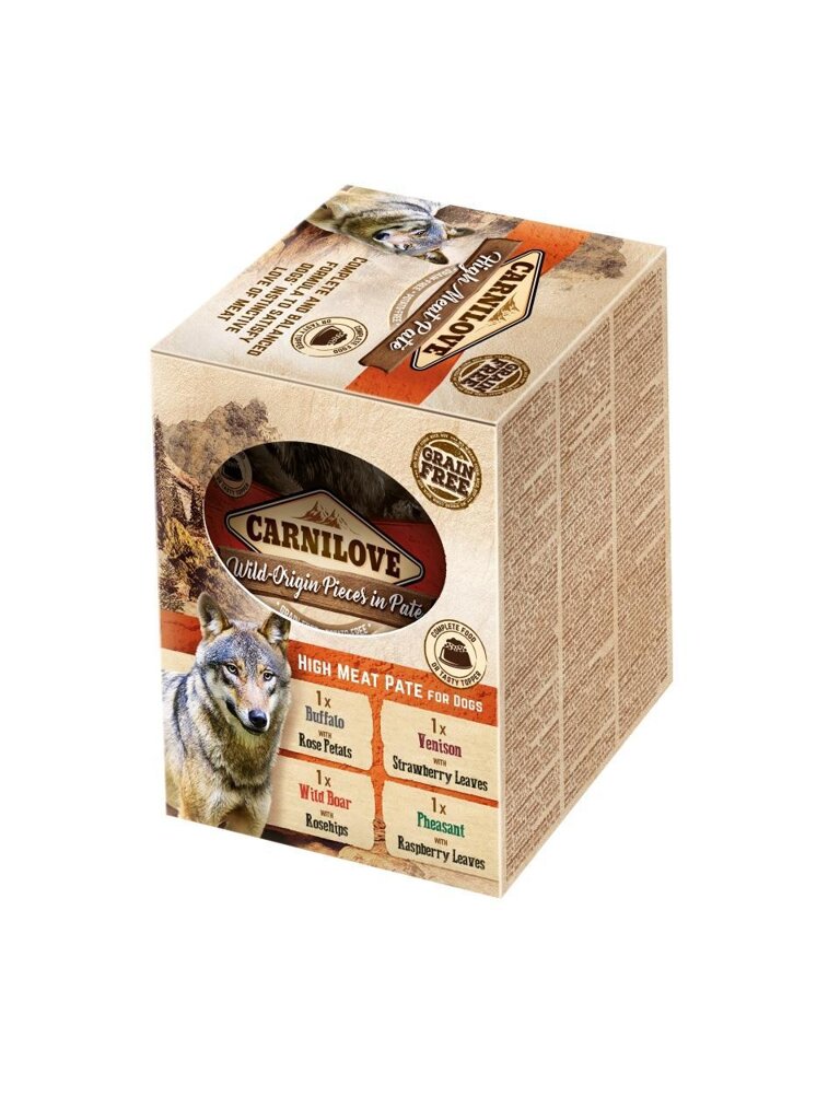|Carnilove Dog Pouch Paté Multipack je multipack krmných kapsiček řady Wild Origin Pieces in Paté, které slouží jako kompletní krmivo nebo chutný topping ke gran...