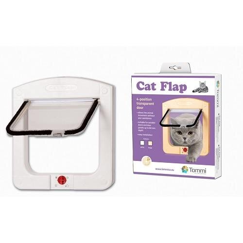 Průchozí dvířka pro kočky.4 - polohová univerzální průchozí dvířka pro kočky.Snadná montáž.Použitelná pro dřevěné dveře a dveře s výplní o maximální tloušťce 60...