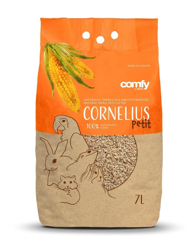 CORNELIUS PETIT NATURAL je univerzální substrát vyrobený ze 100% kukuřice. Je ideální jako výplň klecí a voliér pro drobné savce a ptáky a také terárií s některými plazy. Je zcela přírodní a plně biologicky odbouratelný, lze jej kompostovat. Nepraší, nealergizuje a je šetrná k citlivým zvířecím tlapkám. Účinně pohlcuje vlhkost a neutralizuje a váže nepříjemné pachy. Je účinný a dlouho vydrží. K dostání v praktickém sáčku o objemu 7 l a ekonomickém sáčku o objemu 25 l. Vyrobeno v Evropě. Není vhodný pro lidskou spotřebu. Jemnozrnný výrobek, který může být nebezpečný.