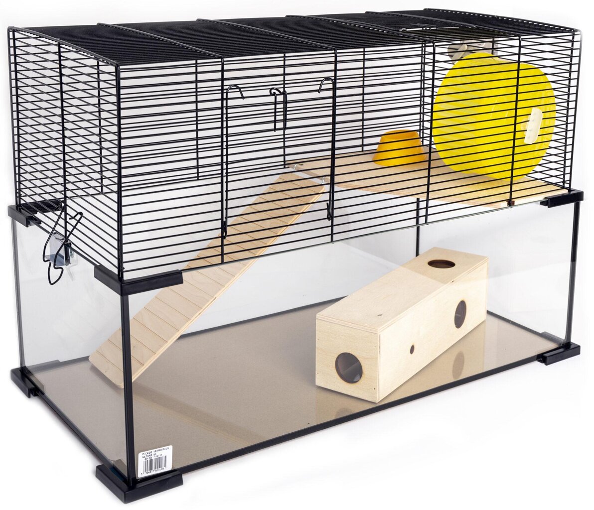 Součástí je patro, napáječka, miska, žebřík, kolečko i tunel (jen pro džungaráka, syřan by neprolez a do kolečka by se nevešel)