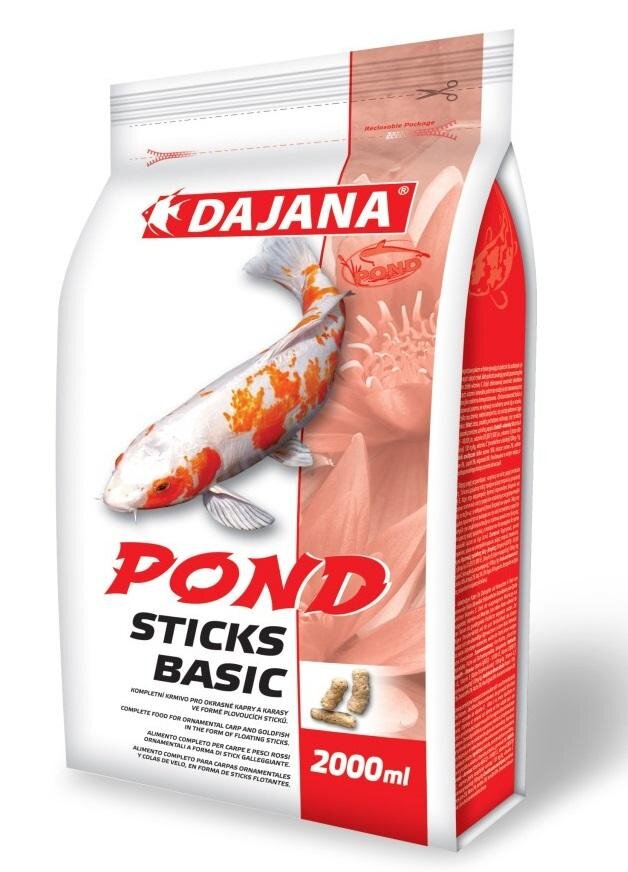 Dajana – Pond sticks basic, krmivo (granule) pro ryby 2 l Kompletní krmivo pro okrasné kapry a karasy ve formě plovoucích sticků. Bílé sticky obsahují obilné kl...