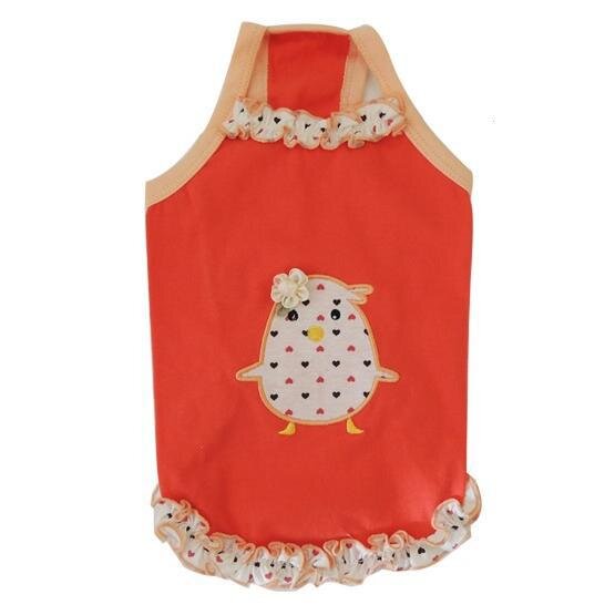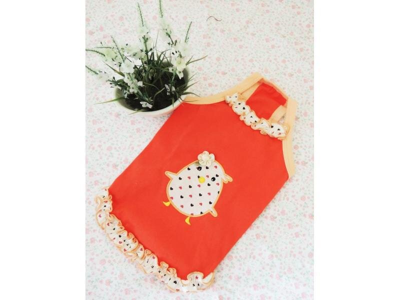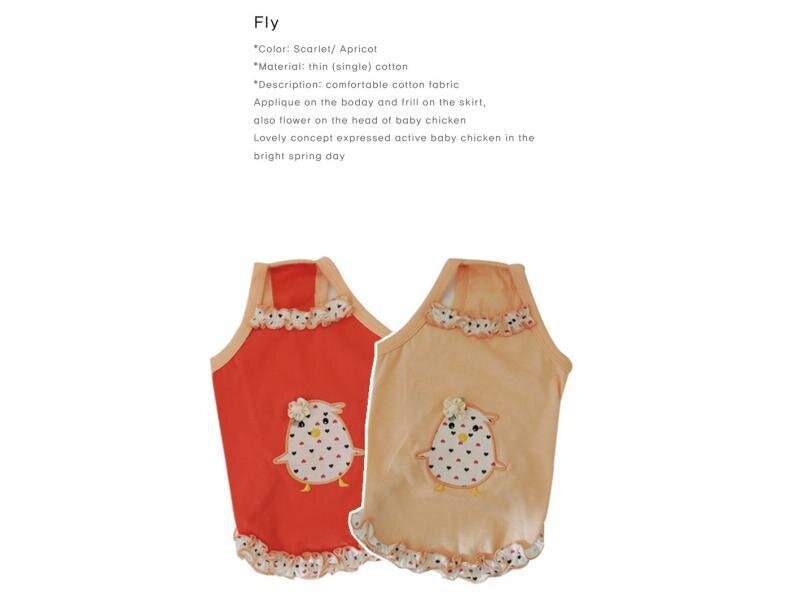 Fly - krásné triko s obrázkem ptáčka a s volánky dole na lemu a na krku Barva: scarlet, meruňková Materiál: bavlna Velikost: S, M, L, XL Velikost