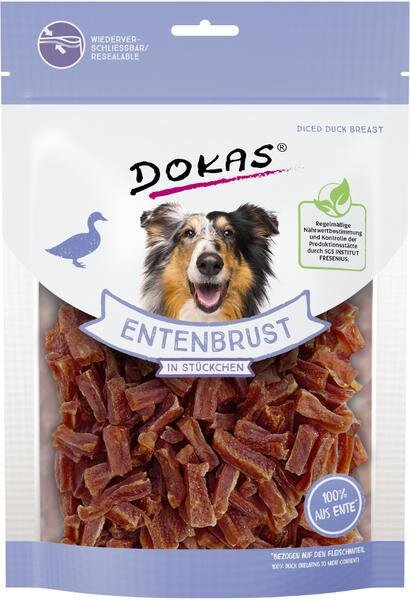 Pamlsky Dokas jsou bez konzervantů, umělých barviv, dochucovadel a glycerinu. Sáček má praktické uzavírání, pamlsky tak zůstanou déle čerstvé a voňavé.