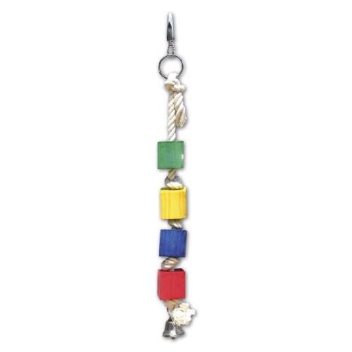 Dřevěná hračka z pevného a odolného materiálu, který vydrží i nápor papoušků se silnými zobáky.