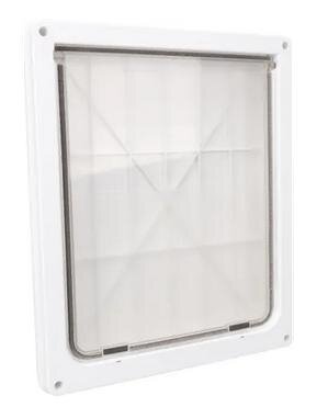 - Tichá, průhledná klapka s magnetickým uzávěrem a kartáčovým těsněním proti průvanu