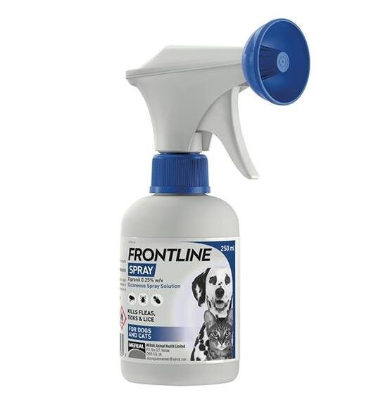 Expediční minimum: FRONTLINE ad u.v. spray (sprej) je fenylpyrazolový insekticid a akaricid. Je určen k hubení ektoparazitů u dospělých psů a koček, u štěňat od dvou dnů stáří a u koťat od věku 7 týdnů.