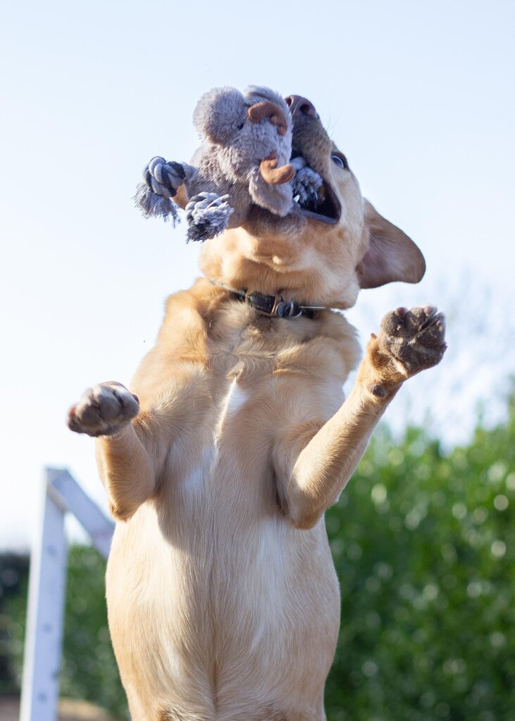 Měkká plyšová vánoční hračka pro psy, která má uvnitř těla zabudované pískátko, nohy s krouceným provazem lze využít k přetahování a házení.