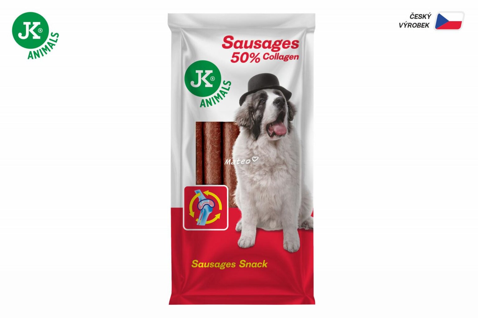 masový pamlsek vhodný pro střední a velké psy uherské klobásy s obsahem 50 % kolagenu pamlsek vyrobený v České republice velikost 2 cm × 30 cm 6 klobás v balení...