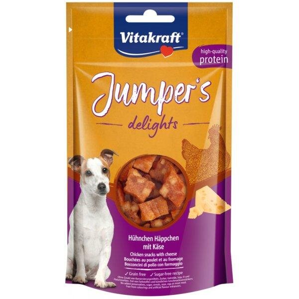 Jumpers delights kuřecí se sýremJemné kuřecí kousky s vynikajícím sýremDoplňkové krmivo pro psy všech plemen Bez přídavku konzervantů, cukru, obilí, sóji, vajec...