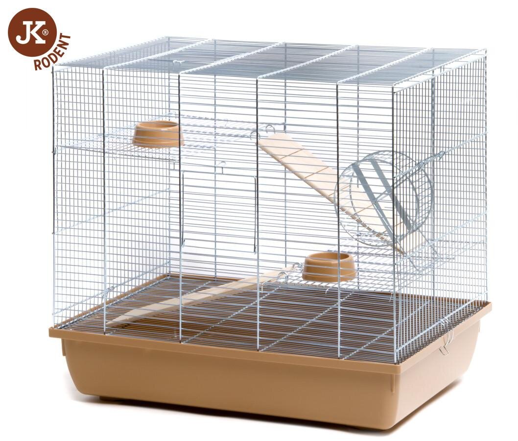 V základní výbavě jsou dvoje dřevěné schůdky, dvě plastové misky, dvě drátěná patra a jeden kovovýkolotoč. Jedná se o kvalitní klec pro osmáky a burunduky s hor...