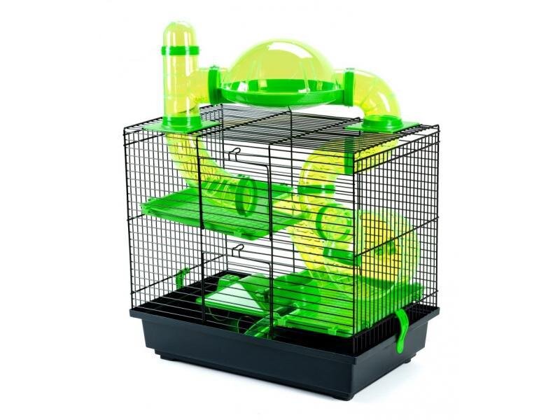 určena hlavně pro křečky černá klec, zelená barva příslušenství kolotoč, domeček, terasa, miska a labyrint velikost 42×28×38 cm ...