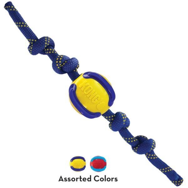 KONG Jaxx Brights Tug Ball – robustní přetahovací lano s rukojetí a výrazným barevným gumovým míčem – je interaktivní hračka pro psy vyrobená z mimořádně odolný...