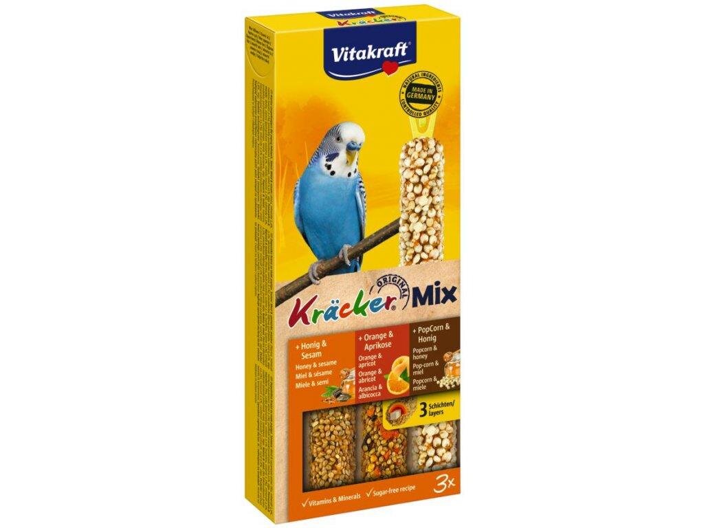 Doplňkové krmivo pro andulky.Lahodné tyčinky pro andulky, s medem a sezam, s pomerančem a broskví, s popkornem a medem...