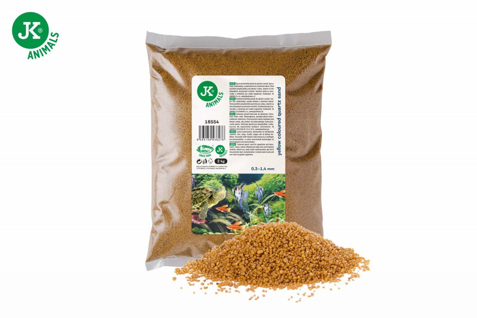 Barevný křemičitý písek do akvárií a terárií. Balení 2 kg. Frakce 0,3–1,4 mm. Barva: žlutá. Voděodolný, vysoká barevná a chemická stálost.