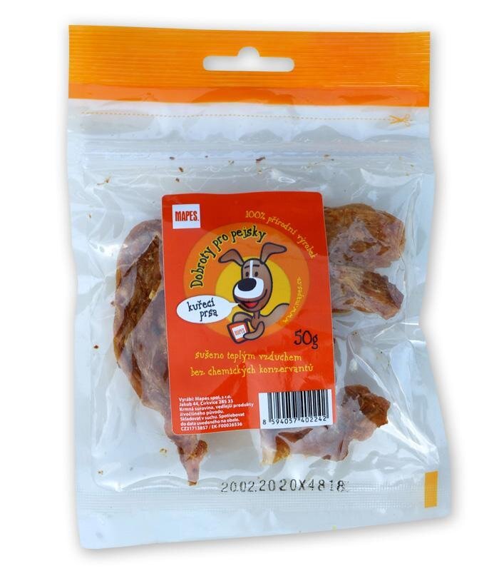 Mapes je česká rodinná firma, která vznikla v květnu 1990. Specializujeme se na výrobu velmi kvalitního a stoprocentně přírodního sušeného doplňkového krmiva pro psy. Od samého začátku máme v této skupině krmiva na našem trhu nejširší sortiment a stále se snažíme hledat nové produkty. Naše pochoutky vyhovují přirozeným požadavků šelmy na potravu a pes šelmou bezesporu je. Výrobní program je přitom sestaven tak, aby si se setkal s individuálními potřebami různých ras psů. Svou pochoutku v něm najdou malá i velká štěňata, starý bezzubý pes, psi trpící nechutenstvím i psi s nadbytečnými kilogramy. Výroba probíhá v moderních prostorách dvou provozů a je pod stálým veterinárním dohledem.