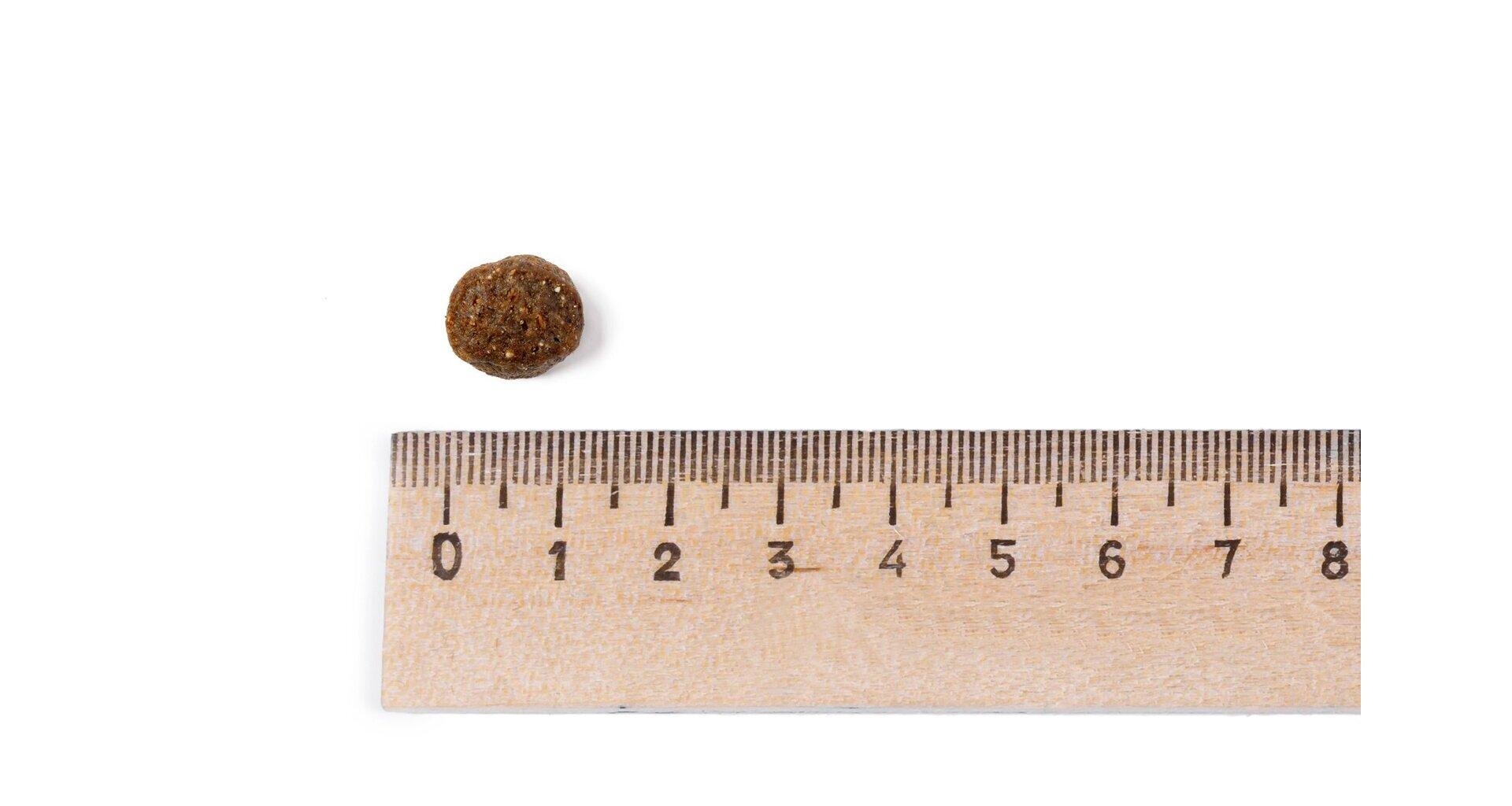 Čerstvé maso z lososa (30%), moučka z mořských ryb (20%), amarant (15%), hrachová moučka, bramborový škrob, drůbeží tuk, mořský zooplankton (5%), sušená vejce (5%), hydrolyzovaná drůbeží játra, pivovarské kvasnice (2,5%), výlisky z hroznových jader, chia semínka (1.3%), karob, chlorid draselný, inulín