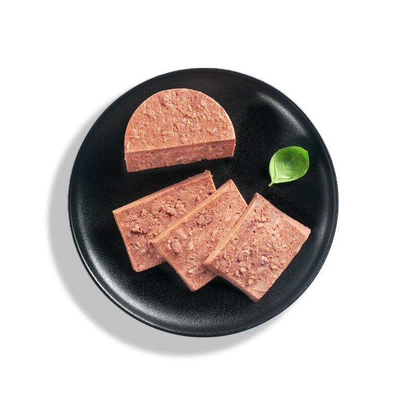 maso a živočišné produkty (65%, z toho 25% kachna); masový vývar (34%); minerální látky (0,5%); vaječné skořápky sušené (0,5%)