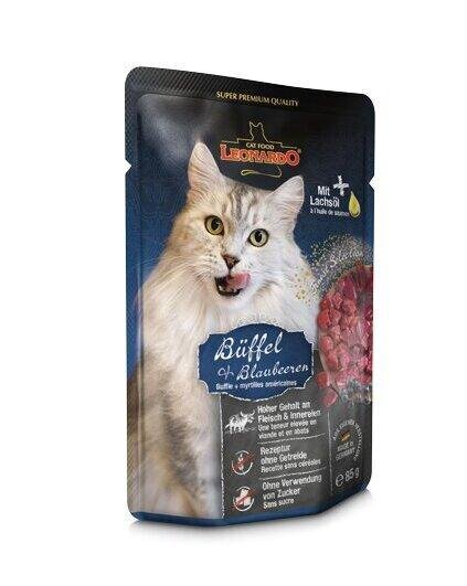 Kapsička pro kočky Leonardo s buvolím masem a borůvkami pro pevné zdraví a dostatek energie