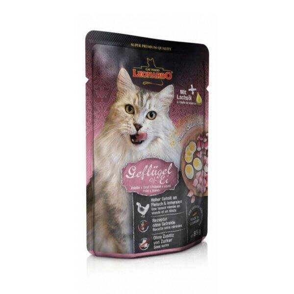 Čerstvé drůbeží maso společně s vejci poskytne dostatek bílkovin pro pevné a zdravé svaly. Poctivý masový vývar dodá spoustu energie na každodenní vyvádění. Přírodní minerální látky pečují o vnitřní orgány a vitamíny podporují přirozenou obranyschopnost vašeho parťáka. Kapka lososového oleje pečuje o srst a pokožku. Kapsička neobsahuje žádné obiloviny, a proto se hodí také pro kočky s citlivým zažíváním nebo alergiemi.