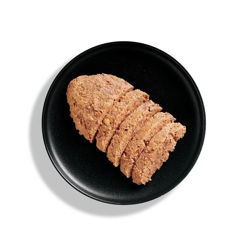 Čerstvé drůbeží maso (60%, svalovina, srdce, játra), vývar (28,3%, drůbeží, hovězí), hovězí plíce (6,5%), vejce (4%), minerály (1%), lososový olej (0,2%)