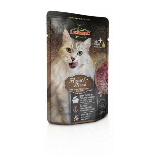 Každá kočka si zaslouží vydatnou porci bílkovin. V lahodné kapsičce Leonardo ji zajistí čerstvé kuřecí maso, jehněčí plíce a hovězí svalovina. To vše ve výborném masovém vývaru. Lososový olej, přírodní minerály a sušené vaječné skořápky podpoří pevné kosti i zdraví pokožky a zajistí dokonale hebkou srst.