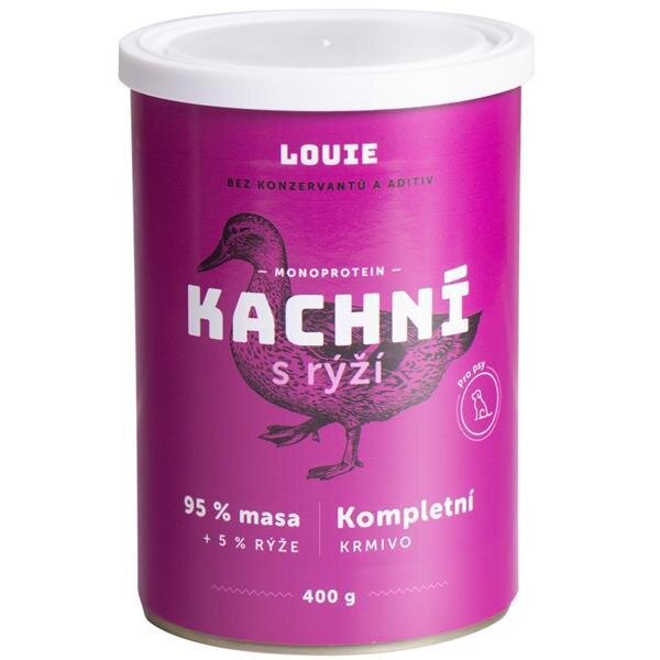 Masová konzerva pro psy Louie s obsahem 95% jemně namletého masa a s 5% rýže bez přidané želatiny, konzervantů, dochucovadel, barviv či stabilizátorů.Rýže absor...