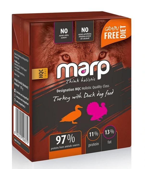 Marp holistic - Krůta s kachnou – Kompletní krmivo pro dospělé psyŠpičková kvalita surovin, 97% bílkovin ze živočišných zdrojů a žádné obiloviny nebo konzervant...