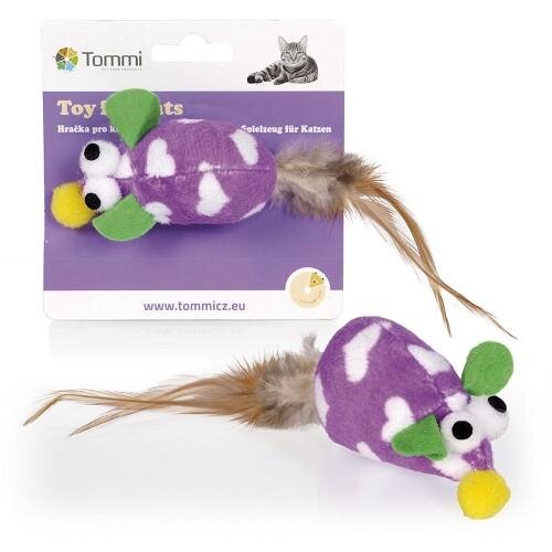 Roztomilá plyšová myška s peříčky místo ocásku, probudí ve Vaši kočičce její přirozené lovecké pudy.Barva: fialová s bílými vzoremRozměr: 8 cm...