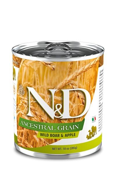 N&D DOG LOW GRAIN Adult Boar & Apple 285gDivočák, jablko. Kompletní vlhké krmivo pro dospělé psy.N&D Ancestral GrainReceptura pro psyBoar & Apple AdultDivočák...