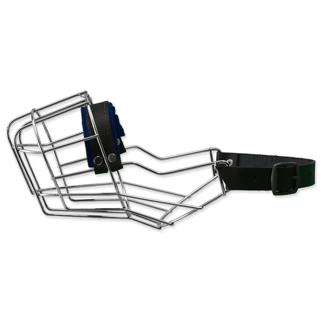 Kovový náhubek s koženými řemínky na zapínání pro fenu dalmatin/labrador ...