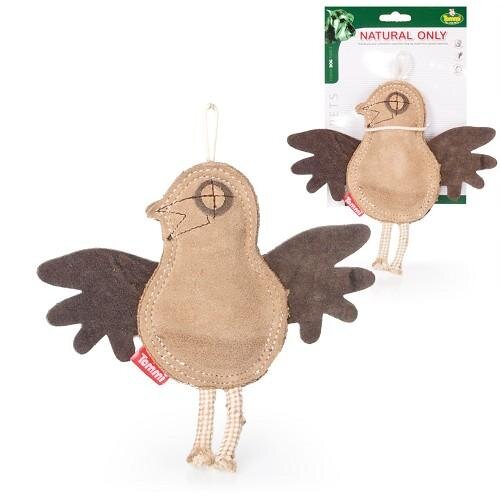Odolná hračka pro psy z přírodních materiálů ve tvaru vrabce.