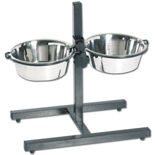|Nerezové misky ve stojanu působí preventivně proti torzi žaludku.Nastavitelná výška, nožičky proti poškrábání podlahy.Obsahuje misky 2 x 2 l.Výška stojanu: 43 c...