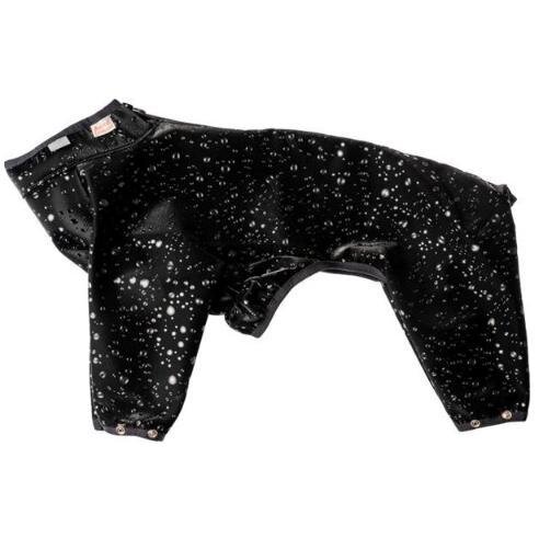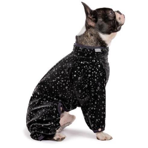 Funkční softshellová kombinéza Stilla chrání psa před chladem, větrem a deštěm. Vysoce kvalitní třívrstvý softshell má nejen vynikající termo- a hydroizolační vlastnosti, ale také vysokou prodyšnost a elastičnost. Střih je navržen anatomicky tak, aby psa neomezoval v pohybu, a přitom chránil všechny důležité partie jeho těla. Okraje kombinézy jsou obšité pružným lemem, takže neodstávají a obleček výborně drží na těle psa, nepodfukuje a neuniká zpod něj teplo. Za krkem je otvor pro připnutí vodítka a všité poutko pro zavěšení (např. při sušení). Oblékání je snadné a rychlé: kombinéza se zapíná na zip všitý po celé délce zad. Pro bezpečnější venčení za zhoršené viditelnosti je vesta opatřena reflexními prvky.