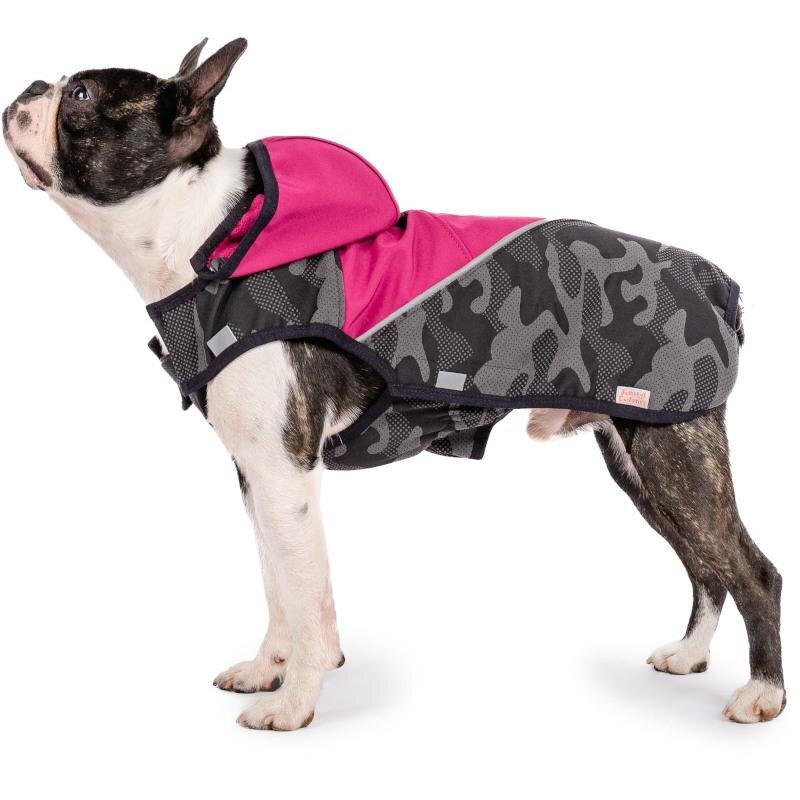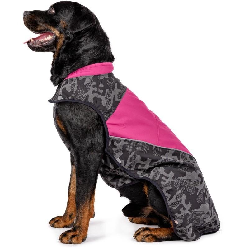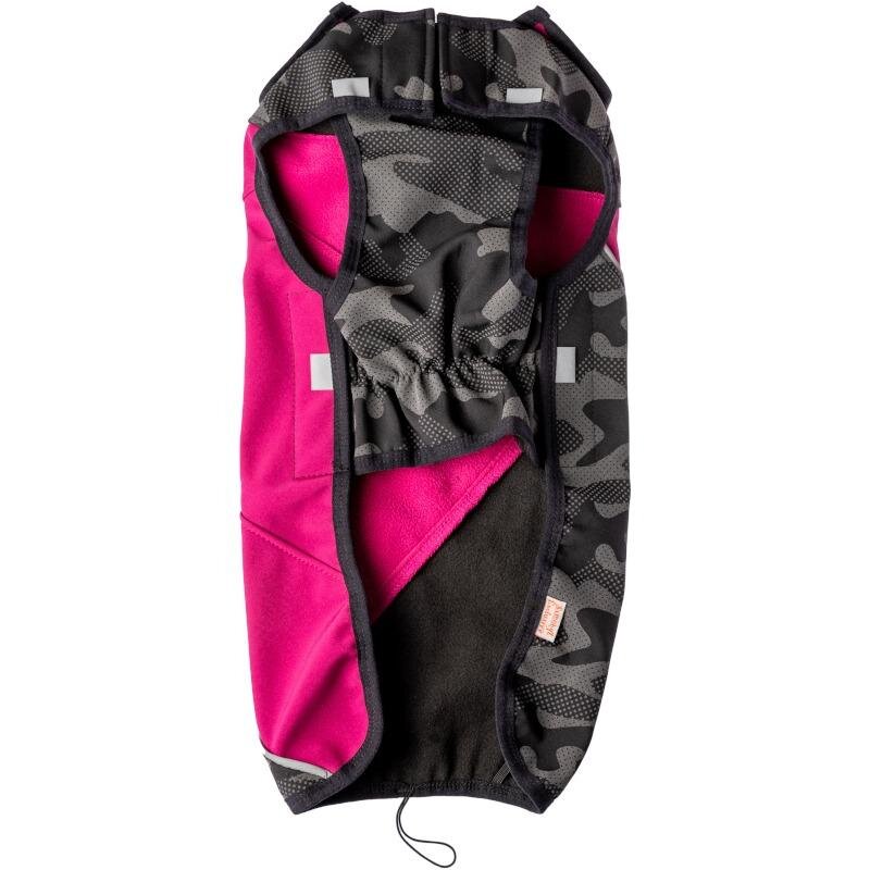 Funkční softshellová vesta Splendor chrání psa před chladem, větrem i deštěm. Vysoce kvalitní třívrstvý softshell má nejen vynikající termo- a hydroizolační vlastnosti, ale také vysokou prodyšnost a elastičnost. Střih je navržen anatomicky tak, aby psa neomezoval v pohybu, a přitom chránil všechny důležité partie jeho těla. Okraje vesty jsou obšité pružným lemem, takže obleček výborně drží na těle psa, nepodfukuje a neuniká zpod něj teplo. Gumičky na zadní nohy a ocásek zajišťují, aby vesta neodstávala v zadní části. Za krkem je otvor pro připnutí vodítka a všité poutko pro zavěšení (např. při sušení). Oblékání je snadné a rychlé díky systému suchých zipů: oboustranné zapínání pod krkem umožňuje optimální nastavení obvodu krční části a zipy na bocích umožňují zapnutí břišní části zleva i zprava. Pro bezpečnější venčení za zhoršené viditelnosti je vesta opatřena reflexními prvky.