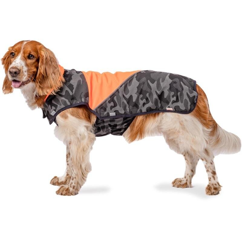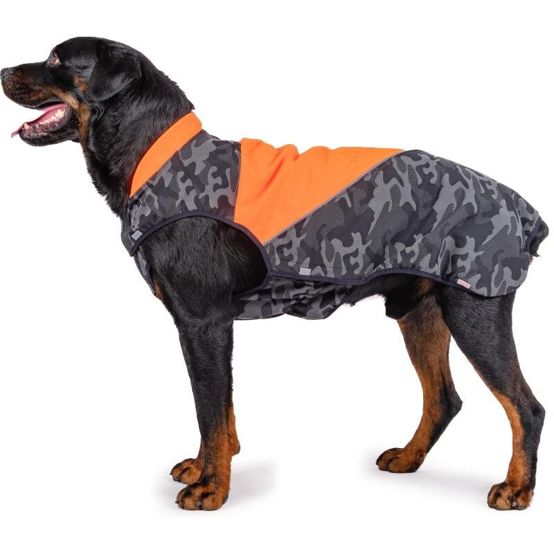 Funkční softshellová vesta Splendor chrání psa před chladem, větrem i deštěm. Vysoce kvalitní třívrstvý softshell má nejen vynikající termo- a hydroizolační vlastnosti, ale také vysokou prodyšnost a elastičnost. Střih je navržen anatomicky tak, aby psa neomezoval v pohybu, a přitom chránil všechny důležité partie jeho těla. Okraje vesty jsou obšité pružným lemem, takže obleček výborně drží na těle psa, nepodfukuje a neuniká zpod něj teplo. Gumičky na zadní nohy a ocásek zajišťují, aby vesta neodstávala v zadní části. Za krkem je otvor pro připnutí vodítka a všité poutko pro zavěšení (např. při sušení). Oblékání je snadné a rychlé díky systému suchých zipů: oboustranné zapínání pod krkem umožňuje optimální nastavení obvodu krční části a zipy na bocích umožňují zapnutí břišní části zleva i zprava. Pro bezpečnější venčení za zhoršené viditelnosti je vesta opatřena reflexními prvky.