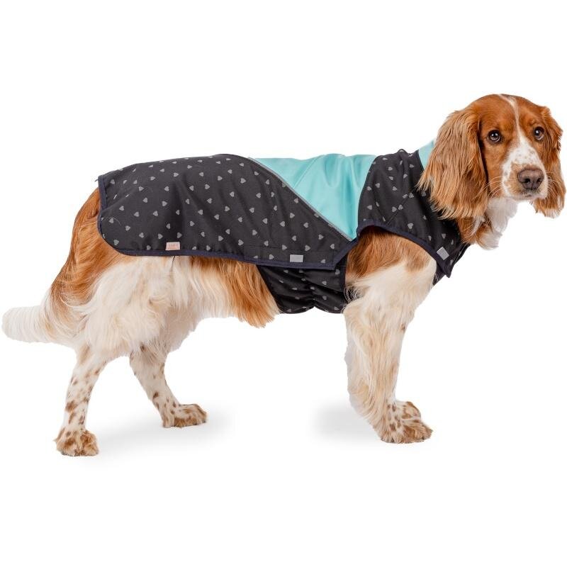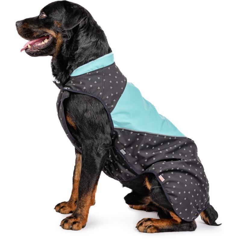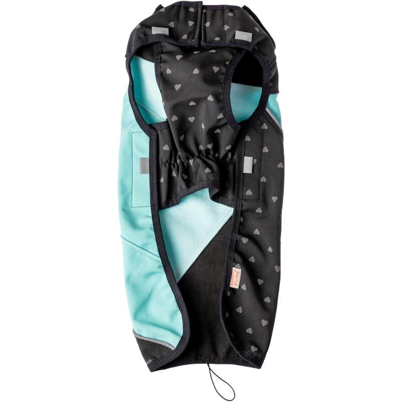 Funkční softshellová vesta Splendor chrání psa před chladem, větrem i deštěm. Vysoce kvalitní třívrstvý softshell má nejen vynikající termo- a hydroizolační vlastnosti, ale také vysokou prodyšnost a elastičnost. Střih je navržen anatomicky tak, aby psa neomezoval v pohybu, a přitom chránil všechny důležité partie jeho těla. Okraje vesty jsou obšité pružným lemem, takže obleček výborně drží na těle psa, nepodfukuje a neuniká zpod něj teplo. Gumičky na zadní nohy a ocásek zajišťují, aby vesta neodstávala v zadní části. Za krkem je otvor pro připnutí vodítka a všité poutko pro zavěšení (např. při sušení). Oblékání je snadné a rychlé díky systému suchých zipů: oboustranné zapínání pod krkem umožňuje optimální nastavení obvodu krční části a zipy na bocích umožňují zapnutí břišní části zleva i zprava. Pro bezpečnější venčení za zhoršené viditelnosti je vesta opatřena reflexními prvky.