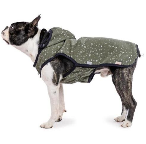 Funkční softshellová vesta Stilla chrání psa před chladem, větrem i deštěm. Vysoce kvalitní třívrstvý softshell má nejen vynikající termo- a hydroizolační vlastnosti, ale také vysokou prodyšnost a elastičnost. Střih je navržen anatomicky tak, aby psa neomezoval v pohybu, a přitom chránil všechny důležité partie jeho těla. Okraje vesty jsou obšité pružným lemem, takže obleček výborně drží na těle psa, nepodfukuje a neuniká zpod něj teplo. Gumičky na zadní nohy a ocásek zajišťují, aby vesta neodstávala v zadní části. Za krkem je otvor pro připnutí vodítka a všité poutko pro zavěšení (např. při sušení). Oblékání je snadné a rychlé díky systému suchých zipů: oboustranné zapínání pod krkem umožňuje optimální nastavení obvodu krční části a zipy na bocích umožňují zapnutí břišní části zleva i zprava. Pro bezpečnější venčení za zhoršené viditelnosti je vesta opatřena reflexními prvky.