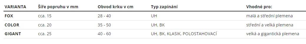 - Polostahovací – při tahu se stáhne na obvod krku, vhodný pro temperamentnější pejsky
