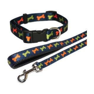 Obojek tmavě modrý s kostmi 35,6 - 58,8 cm x 1,9 cm