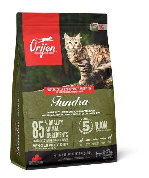 KOMPLETNÍ KRMIVO PRO KOČKY VŠECH PLEMEN A VŠECH VĚKOVÝCH KATEGORIÍORIJEN TUNDRA je bezkonkurenční díky svému obsahu kozy, divokého kance, zvěřiny, alpského sive...