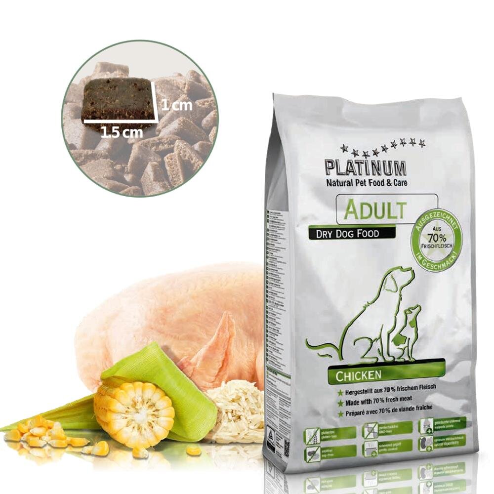 Holistické krmivo polovlhké je vhodné pro dospělé psy všech plemen. Krmivo je obohaceno hodnotnými oleji, výtažky z bylinek, rýží, zeleninou, vitaminy (i vitamínem K1) a stopovými prvky. Žádná z ingrediencí není geneticky upravována a získává se ze svého přirozeného prostředí. 70% čerstvé kuřecí maso, 18% vlhkosti - původní šťáva ze zpracovaného masa. Při konzervaci se používají pouze přírodní konzervační látky na bázi vitamínu E a extrakt z jeřabin. Krmivo PLATINUM je baleno do kvalitních alu-foliových pytlů - tento způsob balení zajišťuje vůni a chuť do posledního sousta.