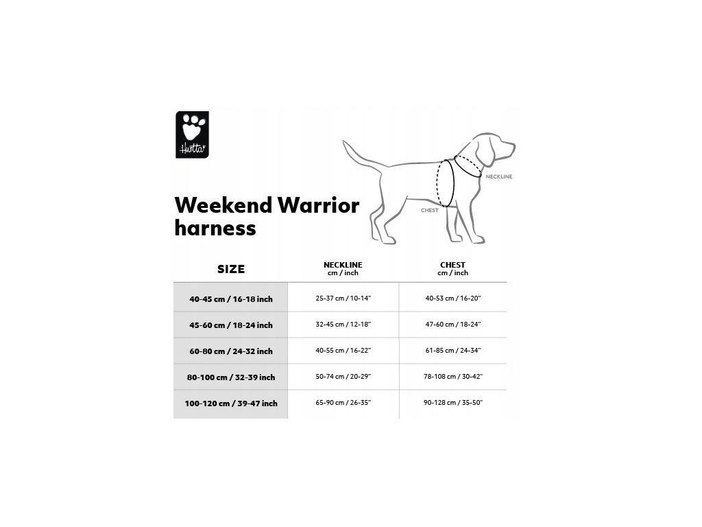 Weekend Warrior postroj: Ergonomický postroj vhodný pro aktivní psy. Při použití postroje se tlak způsobený tahem rovnoměrně rozloží na hrudník psa. Postroj je nastavitelný kolem krku a hrudníku, díky čemuž tento promyšlený produkt perfektně sedí.