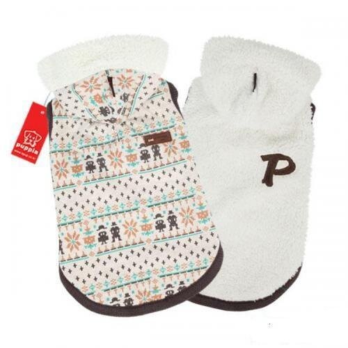 Puppia bunda Mingle Bunda s kapucí z aktuální zimní kolekce Puppia s krásným zimním vzorem z jedné strany a jednobarevnou z druhé strany, nosit lze obě. Má velmi pohodlný střih, takže pes má optimální volnost pohybu. Materiál: Bavlna 95%, Polyurethan 5%, Polyester 100%
