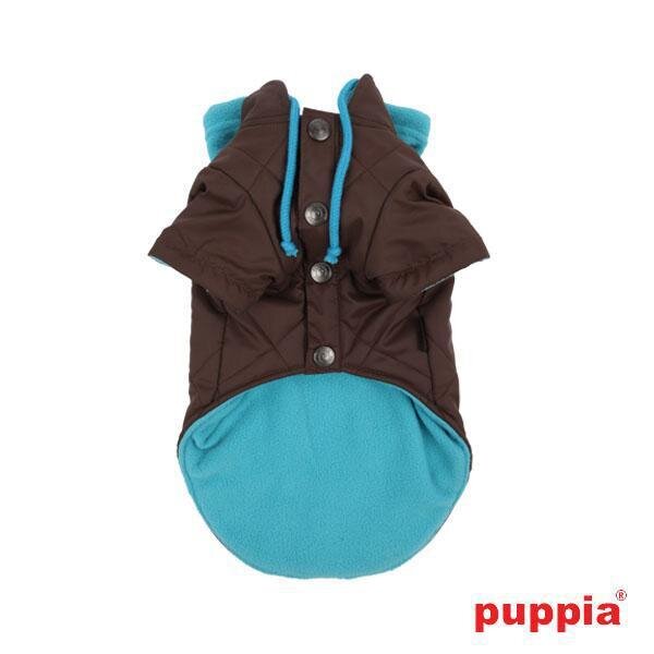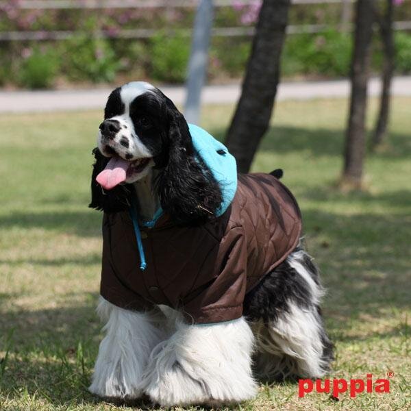 Bunda s kapucí z aktuální zimní kolekce Puppia. Má velmi pohodlný střih, takže pes má optimální volnost pohybu.
